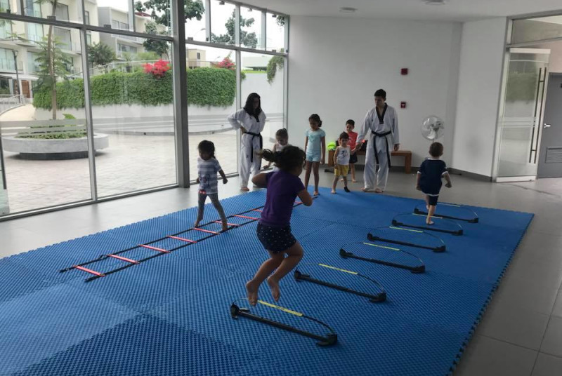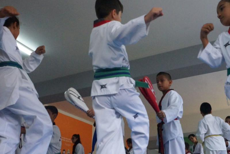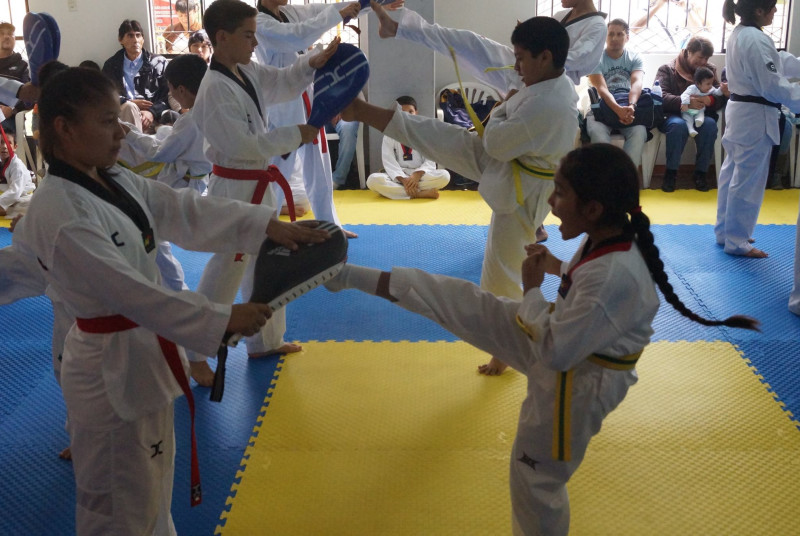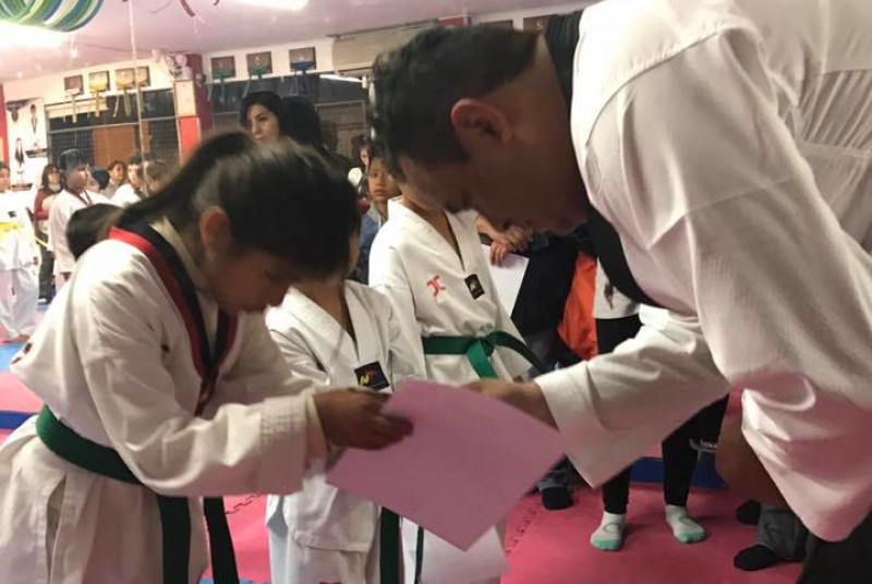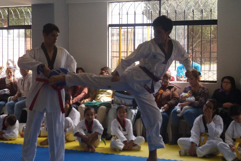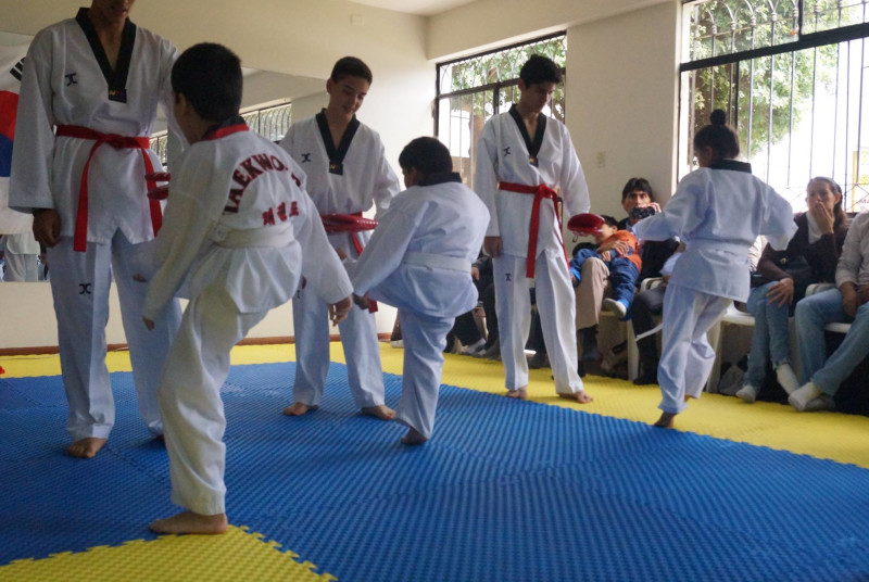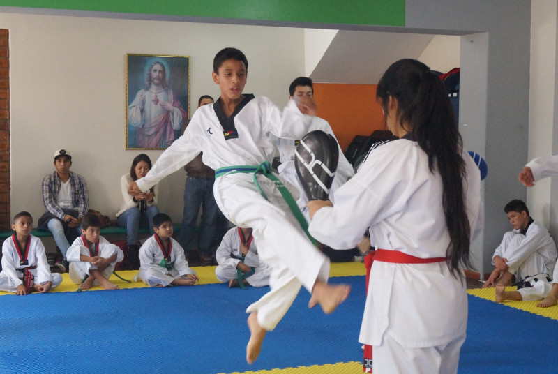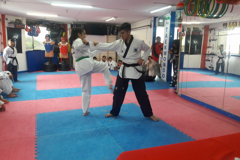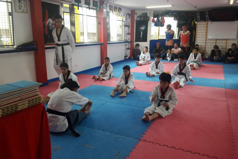 Academia de Taekwondo, con profesores altamente calificados y asistentes que hacen que las clases tengan un seguimiento personalizado para el alumno, amplias y cómodas instalaciones totalmente equipadas para las sesiones y enseñanza de esta disciplina.