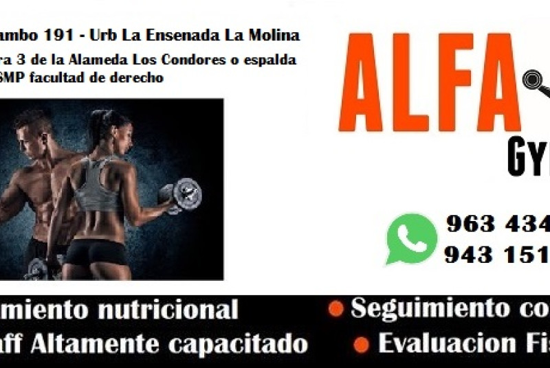 Alfa Gym es un gimnasio de Fitness, que brinda entrenamiento integral, a cargo de instructores de gran experiencia, su servicio incluye asesoramiento nutricional de acuerdo a la rutina definida para el alumno así como seguimiento y evaluación física para medir los avances. También cuenta con Juguería Fitness dentro de las instalaciones.