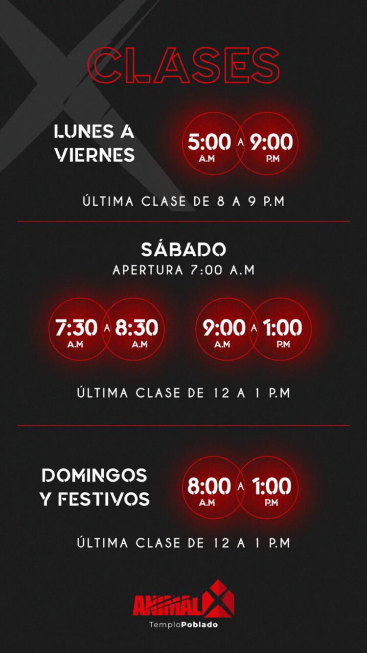 Sedes de ANIMALXEn Animalx Templo La Poblado se ofrecen actividades como Cardiobox, Stretching, Entrenamiento funcional, Spinning, Boxeo, Fútbol, Musculación y Cardio.