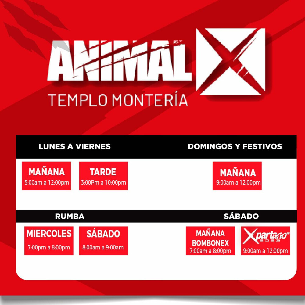 Sedes de ANIMALXEn Animalx Templo Monteria se ofrecen actividades como Entrenamiento funcional, Musculación y Cardio.
