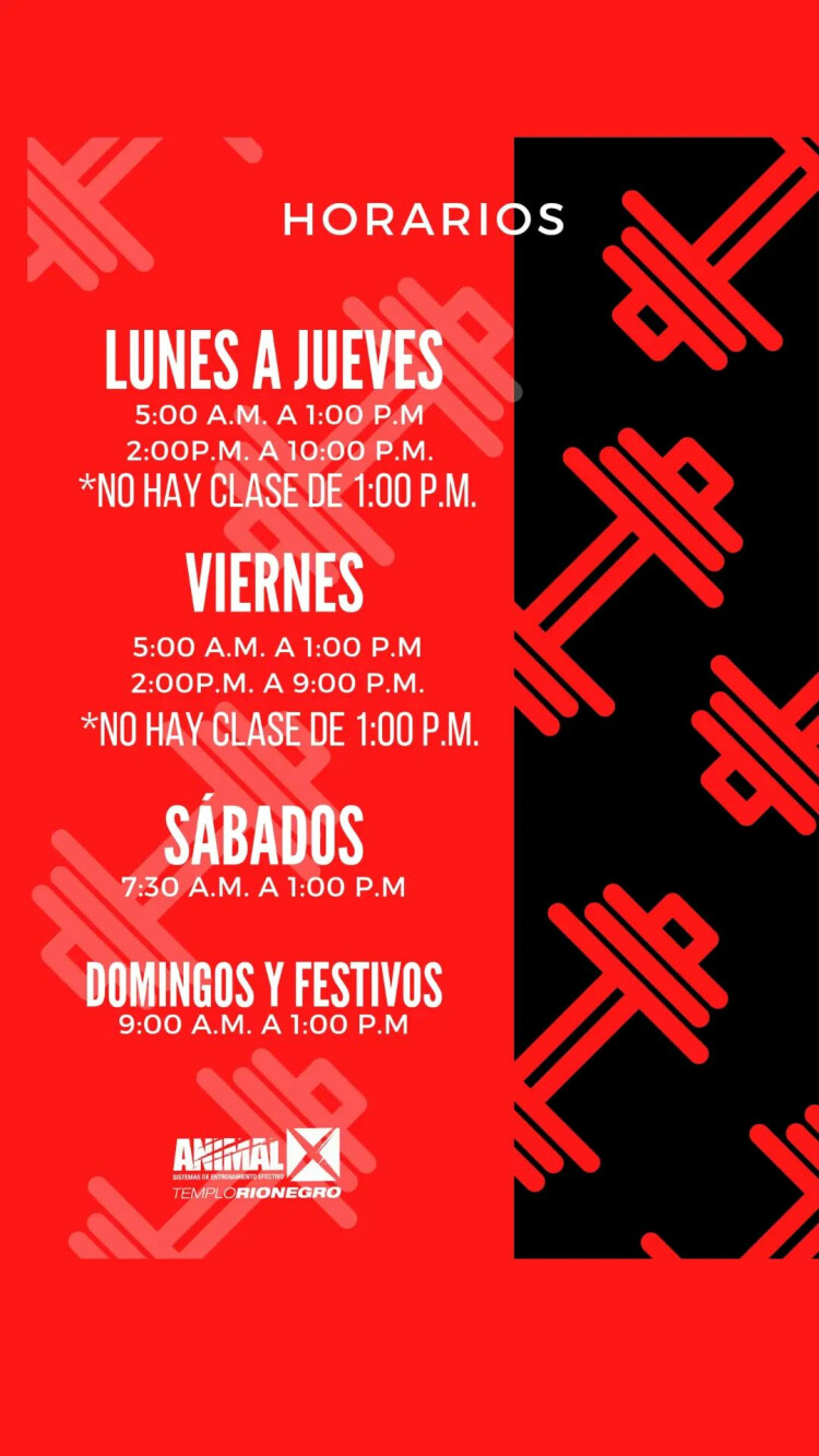 Sedes de ANIMALXEn Animalx Templo Rionegro se ofrecen actividades como Entrenamiento funcional, Musculación y Cardio.