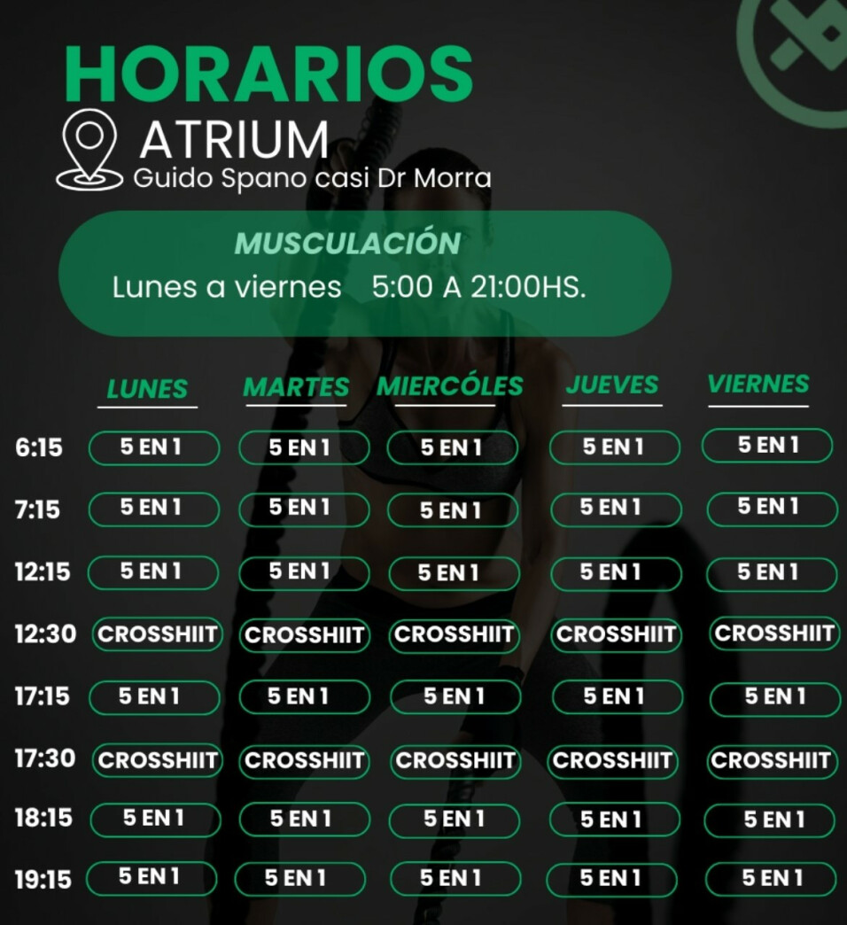 Sedes de Exen GymEn Exen Gym Atrium se ofrecen actividades como CrossFit, Entrenamiento funcional, Musculación, HIIT y Cardio.