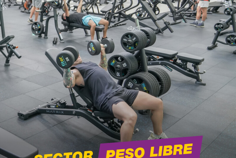 • Sector funcional: +25 estaciones de peso libre, +50 pares de mancuernas y + 1800kg de tonelaje
