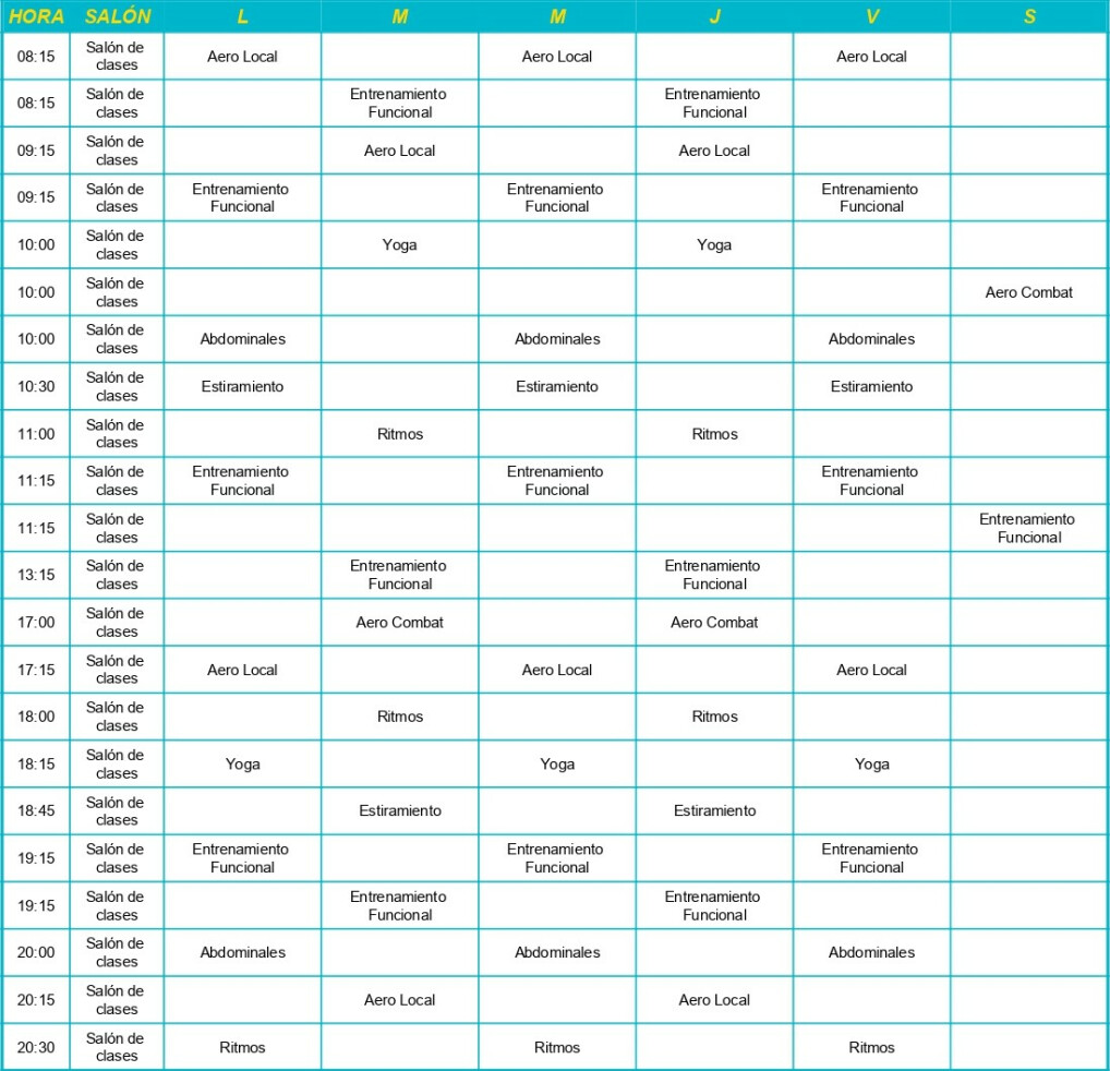 En Fiter Flores se ofrecen actividades como Abdominales, Aero Local, Elongación, Ritmos, Entrenamiento funcional, Yoga, Musculación, Cardio y Combat.