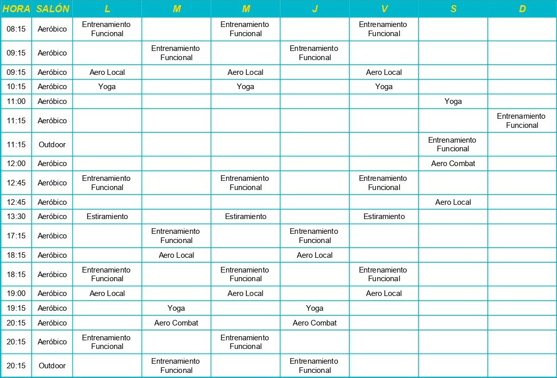 En Fiter Núñez se ofrecen actividades como Aero Local, Elongación, Ritmos, Entrenamiento funcional, Yoga, Boxeo, Musculación, Cardio y Combat.