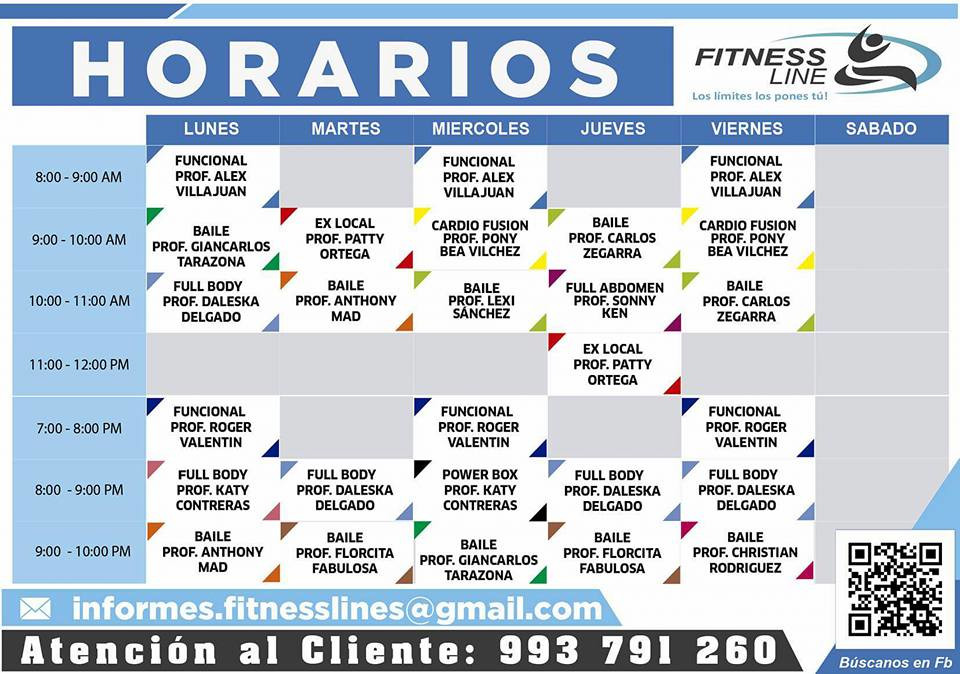 El local de Fitness Line Gym se encuentra ubicado en Los Jazmines del Naranjal MZ R lote 50 en el barrio Los Olivos.