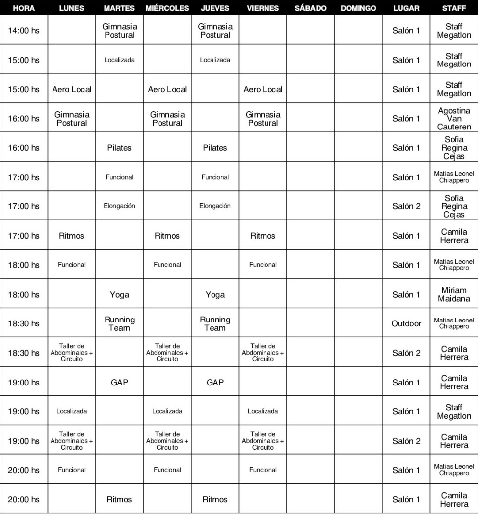 Sedes de MegatlonEn Megatlon Jardin se ofrecen actividades como Abdominales, Aero Local, BODYPUMP ®, Circuit Training, Elongación, GAP, Gimnasia Acuática, Gimnasia Localizada, Ritmos, CrossFit, Entrenamiento funcional, Pilates, Spinning, Yoga, Natación, Boxeo, Grupo de Running, Musculación, HIIT y Cardio.