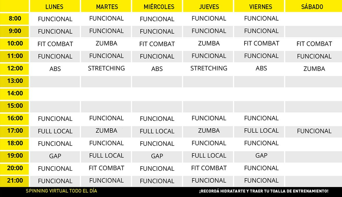 En ON FIT Almagro se ofrecen actividades como Abdominales, Fit combat, GAP, Stretching, Zumba, Entrenamiento funcional, Musculación, Cardio y Spinning Virtual.