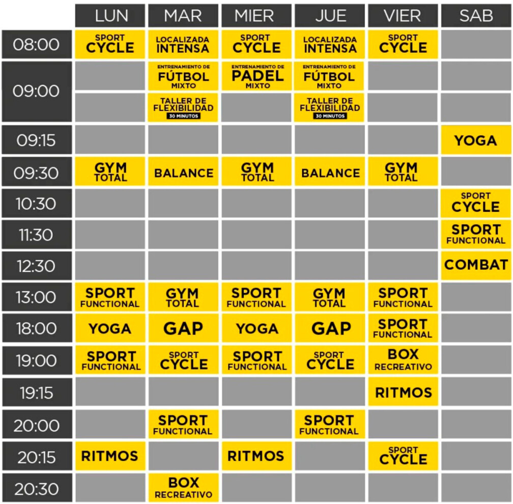 Sedes de SportClubEn SportClub La Barraca se ofrecen actividades como BODYBALANCE ®, GAP, Gimnasia Localizada, Ritmos, Entrenamiento funcional, Indoor Cycle, Yoga, Boxeo, Fútbol, Musculación, Cardio, Padel y Combat.