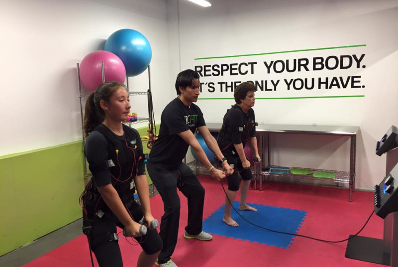 Electro-estimulación muscular (EMS). Con 20 minutos de ejercicio en TecFit te ayuda a: incrementar tu actividad física, controlar tu peso, eliminar celulitis, reducir dolores articulares, generar hipertrofia muscular y mejorar tu fitness.